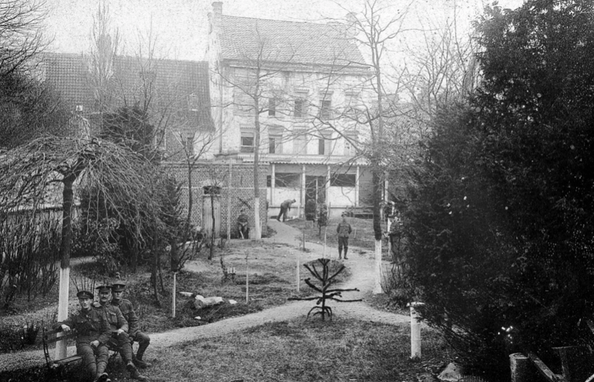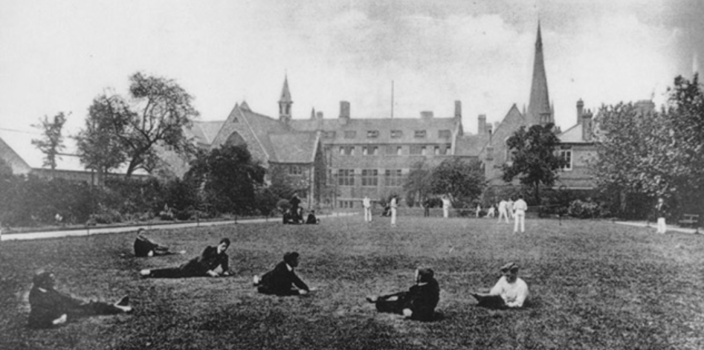 Students at the St. Mary’s campus in Hammersmith during the 1850s. I was never in a position to judge how exact was his prophecy, for my first year at College coincided with the beginning of the 1914-18 war. As young men in civilian clothes, some just under, and some of military age, it behoved us, therefore, to be careful not to inflict ourselves publicly on the general population, at a time when posters proclaimed the fact that our King and Country needed us. Our main place of enjoyment was confined to the indoors, though we did play whatever football we could with the other London Colleges. On occasions we showed that we took the country’s situation seriously, by a series of route marches though what good that did us, I never really found out.