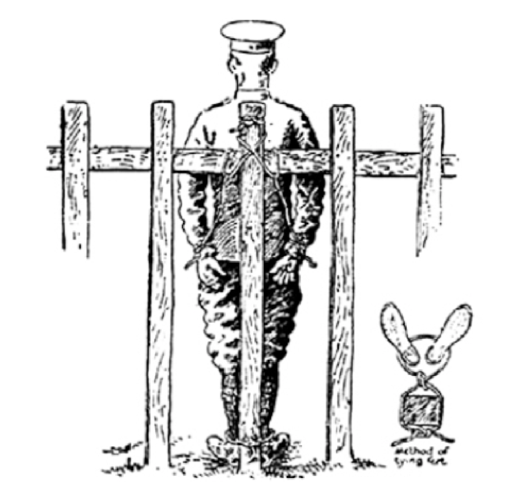 Buglers came into their own and we were reminded of our various parades from dawn to dusk. “Get out of bed – – – – – – – -“ began the day – “come to the cookhouse door boys – – – – – -“ “Quarter of an hour to get ready in.” “Fall in A, fall in B- – – – -“, “You can be a defaulter as long as you like, as long as you answer your name”, etc. etc. All these were preceded by the battalion call so that there could be no confusion with calls from other regiments in the neighbourhood. Apart from ‘Jankers’, the most irritating call of all was reveille, for despite having to lie on hard ground we were young enough to get used to discomfort, and hated the early morning call to begin the day. It was said that no one ever became a soldier until he answered the confined to barracks call – this meant reporting to the guard room every hour after parades were over. I was lucky enough to escape this indignity all through my army life, though there were times when I might have deserved such punishment had I been caught – thus I was never able to say I was a real hundred per cent soldier.