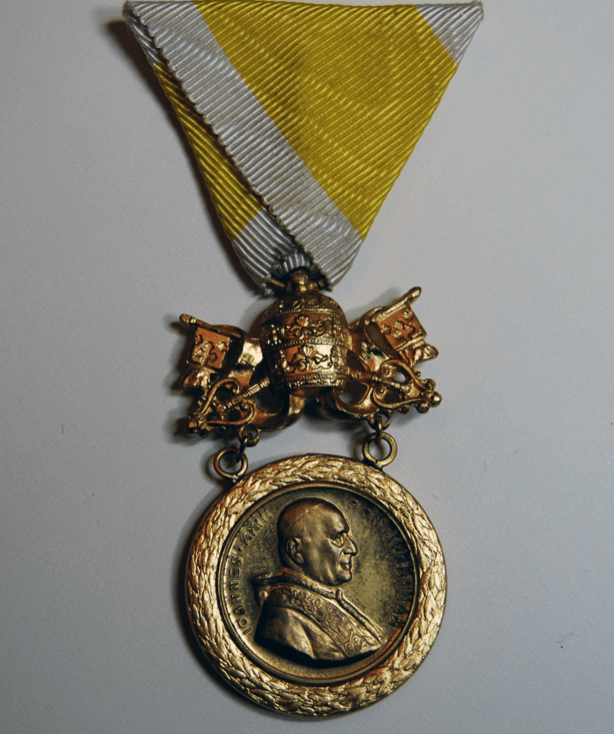 In 1925, the concept of awarding this medal as a mark of recognition to persons in service of the Catholic Church, both civil and military, lay and clergy alike, became acceptable. Members of the Swiss Guards may receive it for three years of faithful service.