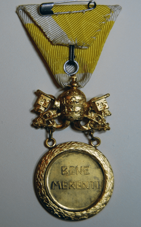 The Benemerenti Medal was first awarded by Pope Pius VI (1775–1799) as a military decoration. In 1831 under Pope Gregory XVI (1831–1846) a special Benemerenti medal was struck to reward those who fought courageously in the Papal Army at Ferrara, Bologna, and Vienna.